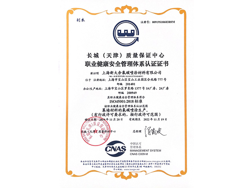 職業健康安全管理體系認證證書