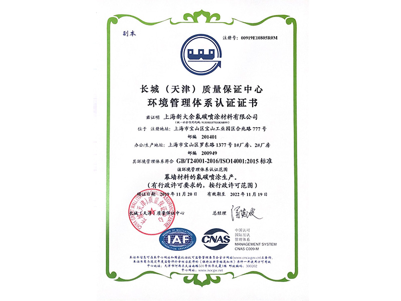 環境管理體系認證證書